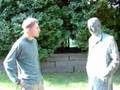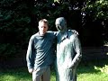 Description: Ian interviews a trenchcoated statue |